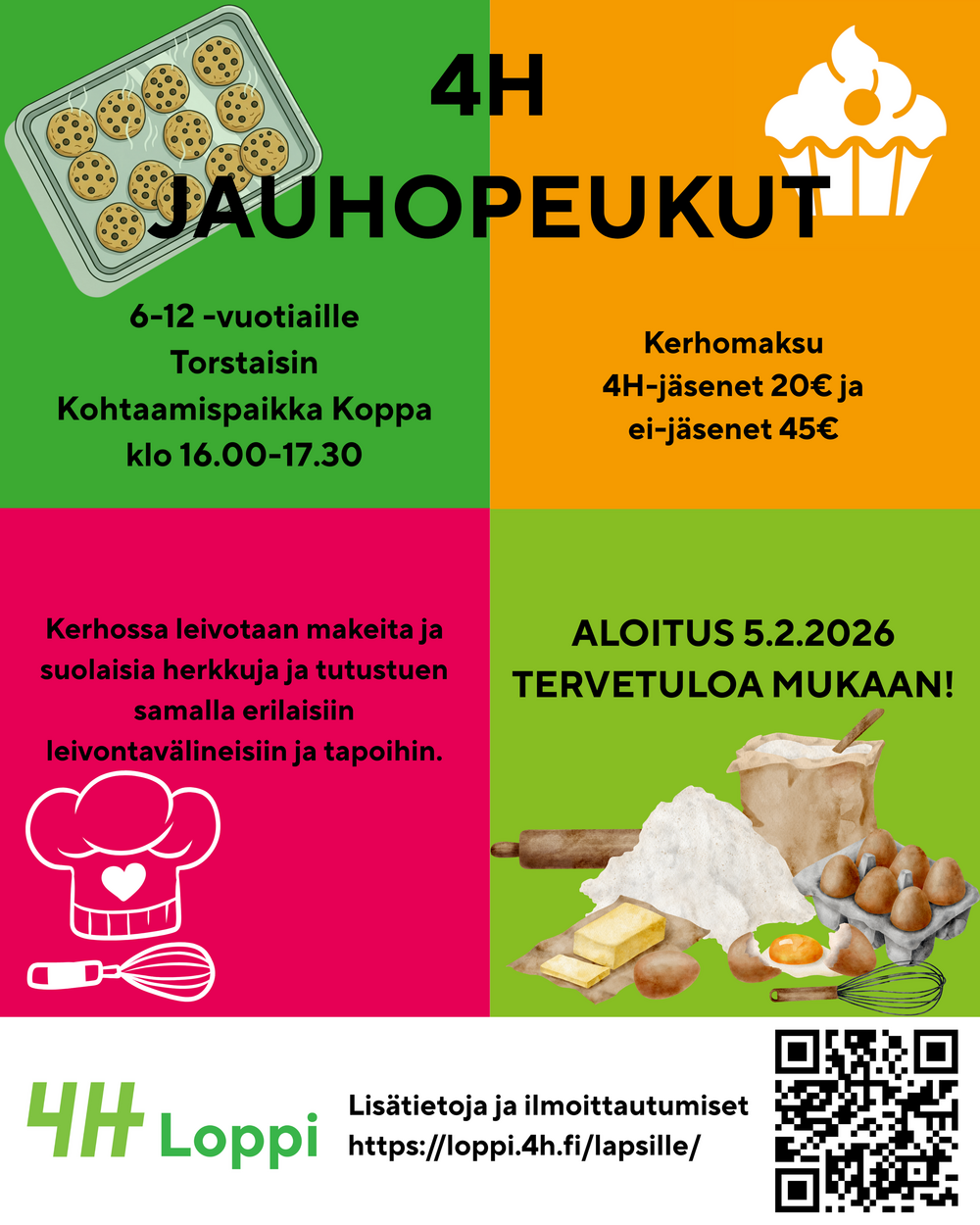 Lopen 4H-yhdistys järjestää Pihatyöt-koulutuksen, joka on tarkoitettu yli 16-vuotiaille nuorille. Koulutus on kaksipäiväinen. Ensimmäinen osuus järjestetään maanantaina 18.5.2026 klo 16.30-18.30…
