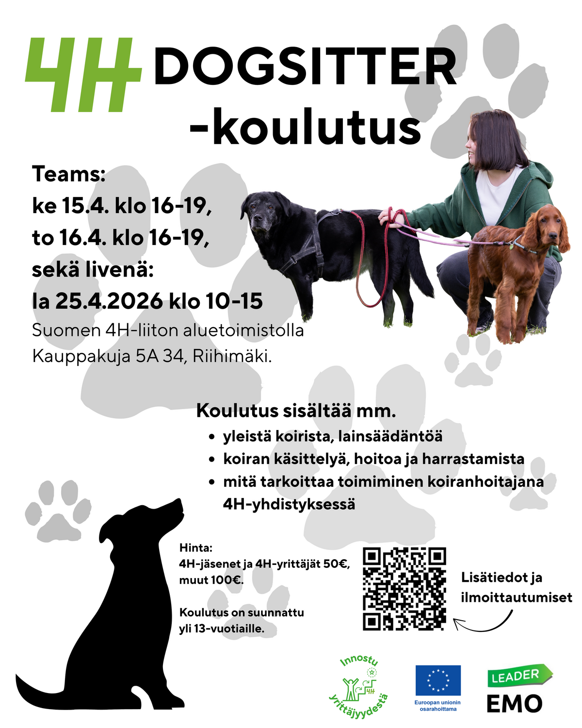 Koulutus toteutetaan Teamsissäke 15.4. klo 16-19, to 16.4. klo 16-19, sekä livenä la 25.4.2026 klo 10-15 Riihimäellä Suomen 4H-liiton aluetoimistolla, Kauppakuja 5 A 34, 11100 RMK