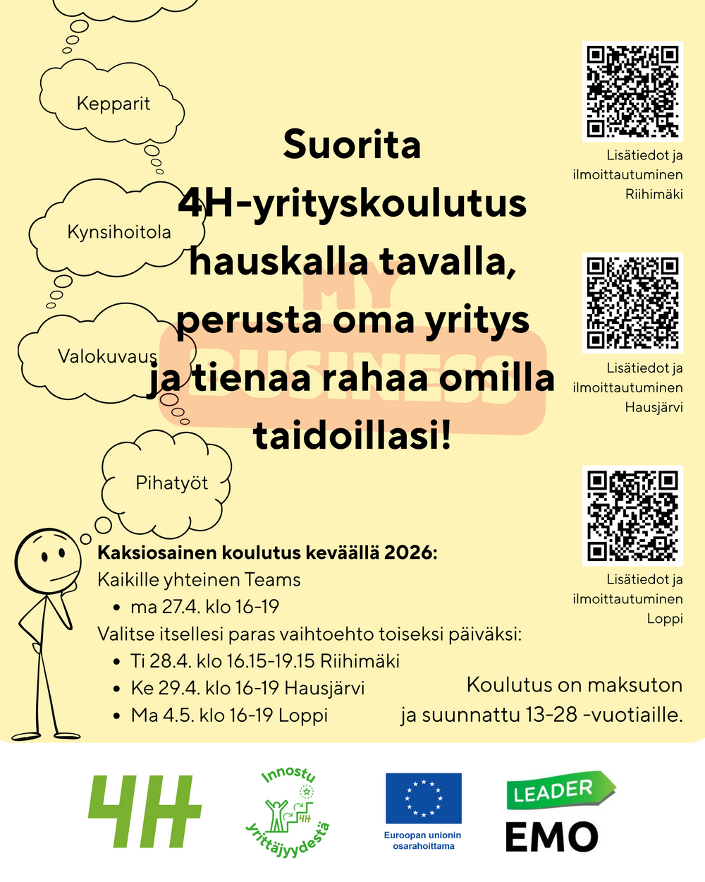 Lisää tietoa 4H-yrityskoulutuksesta löydät täältä.