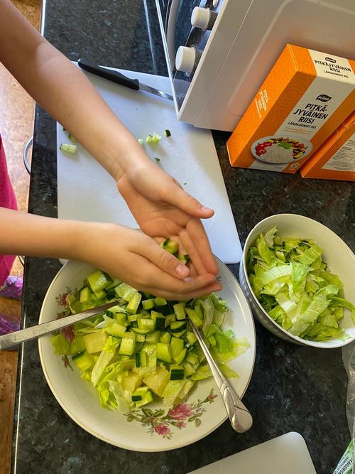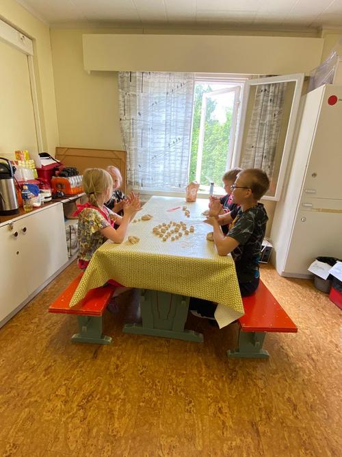 Ruokakoulu-leirillä on ollut paljon puuhattavaa, lapset ovat järjestäneet perhepäivällisen eilen, sekä käyneet tänään tutustumassa Mikkolan Suoramyyntiin.